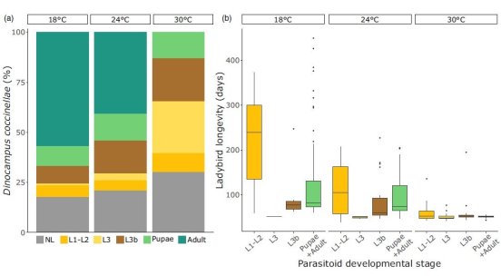 Říjen 2025: vyšší teploty negativně ovlivňují vztah mezi slunéčky a jejich parazitoidy Dinocampus coccinellae