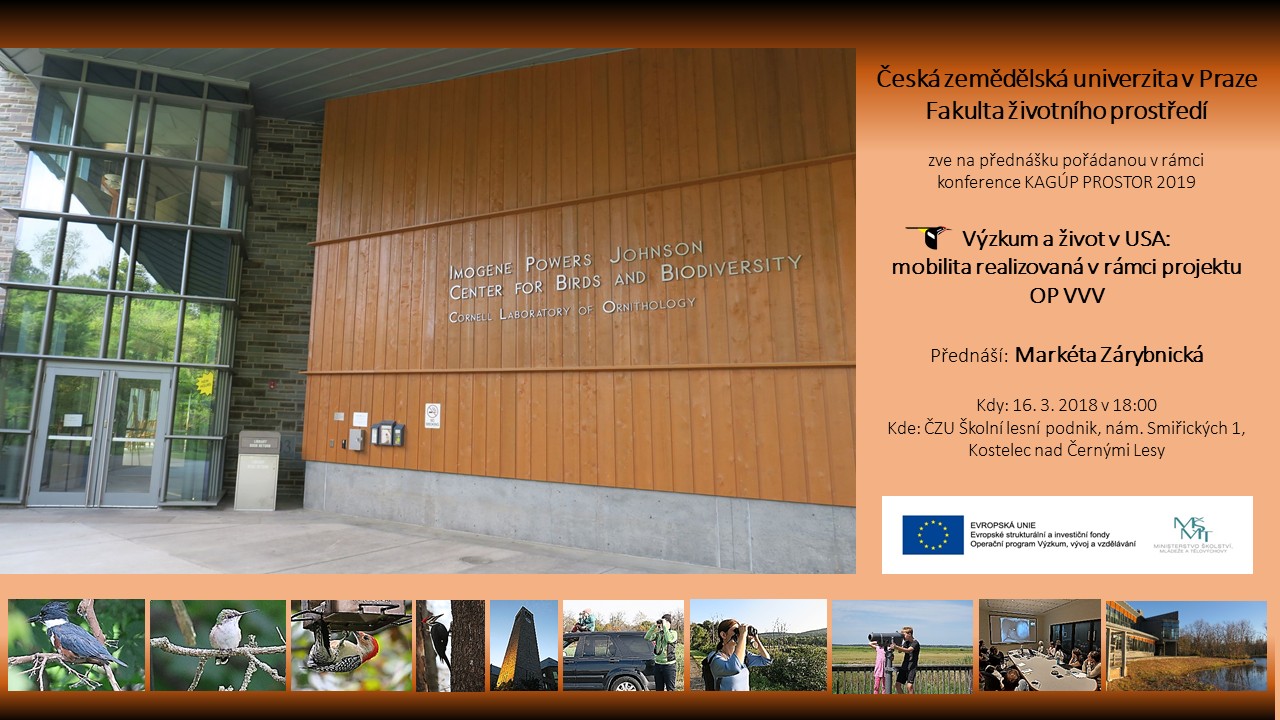 srdečně Vás zveme na seminář "Výzkum a život v USA: mobilita realizovaná v rámci projektu OP VVV", který se uskuteční v sobotu 16. března 2018 od 18:00 v rámci konference KAGÚP PROSTOR 2019 v areálu Školního lesního podniku v Kostelci nad Černými lesy. Přednáší Ing. Markéta Zárybnická, Ph.D.