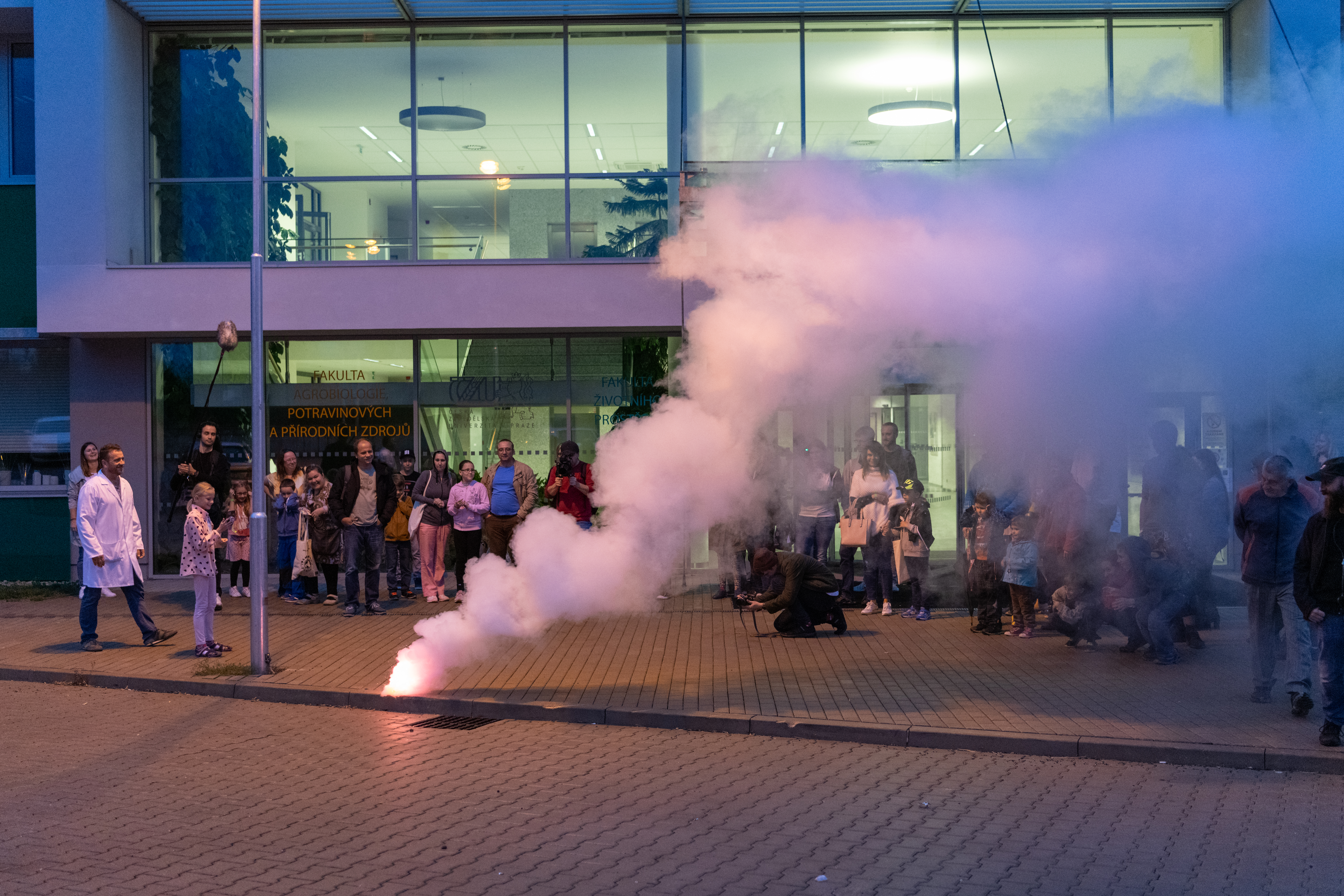 Noc vědců na FŽP začala ukázkou letky fakultních dronů v libosadu od 17:00, pokračovala v posluchárně ZI od 18:00 promítáním filmu Krajina pro včely s diskusí s včelařem, od 19:00 následovala vědecká show s názvem Je přítomen hliník? a od 19:30 program zakončila projekce filmu Zelená poušť.