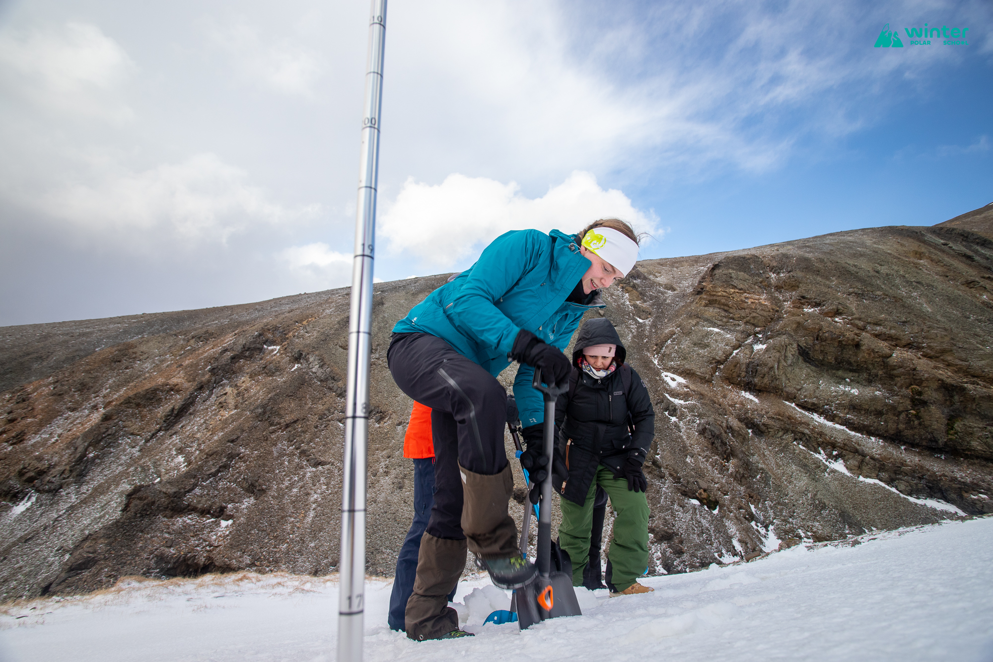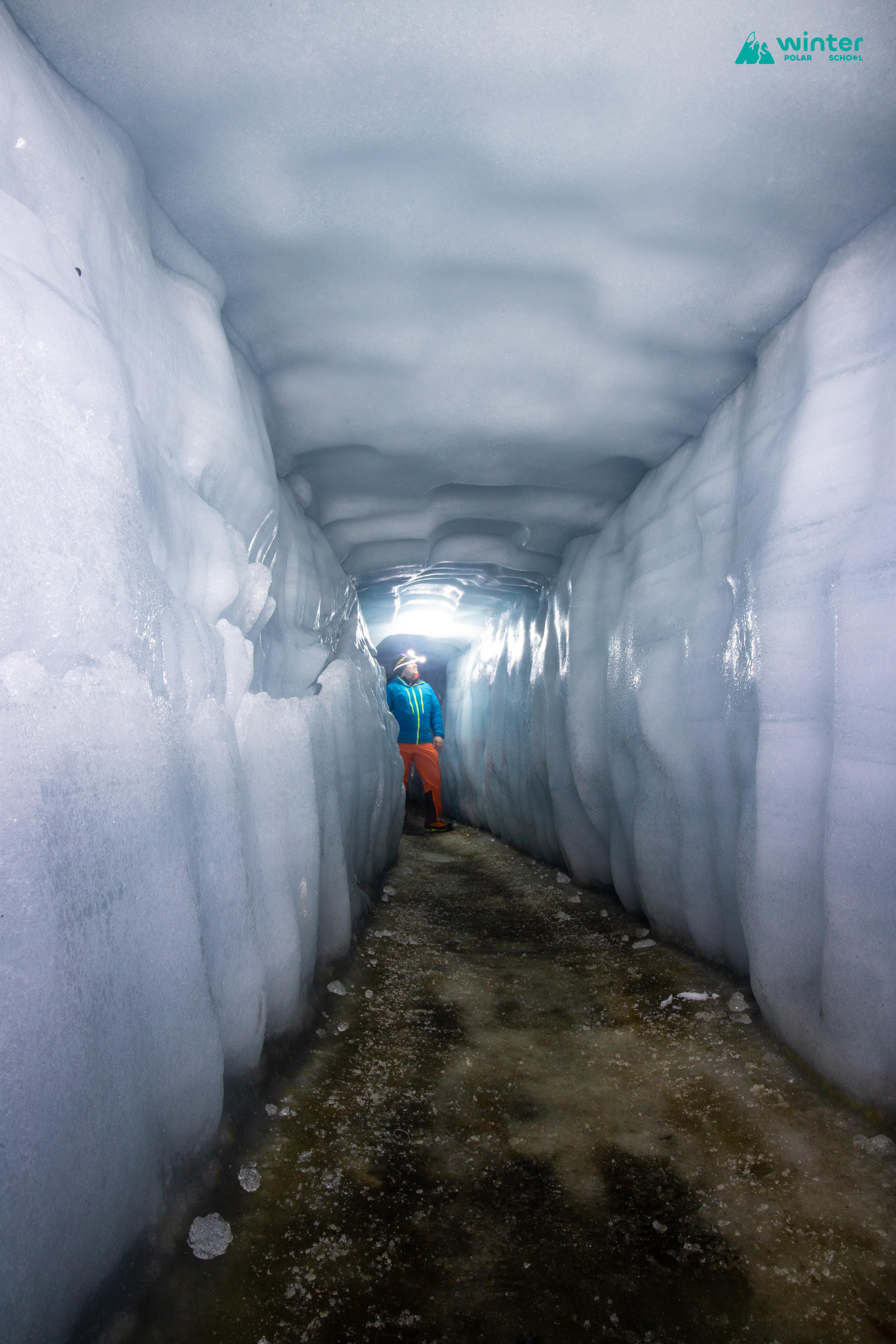 Inside the man-made ice cave, blue ice walls and narrow passages take us deeper into Iceland's chilling history. Outside the cave we collect snow profile data, examine the snowpack, and soak up the unique atmosphere—cold, quiet, and ancient.