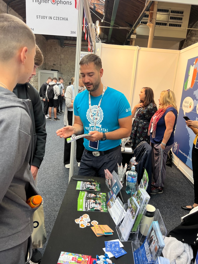 From September 17 to 19, 2025, the annual Higher Options Fair took place in Dublin, Ireland. At the invitation of the Czech Ambassador to Ireland, H.E. Mr. Pavel Vošalík, the Czech University of Life Sciences Prague (CZU), represented by Jakub Mlejnek, President of the GSN Student Union and PhD student, participated for the second time at the Study in Czechia booth, together with other Czech universities.