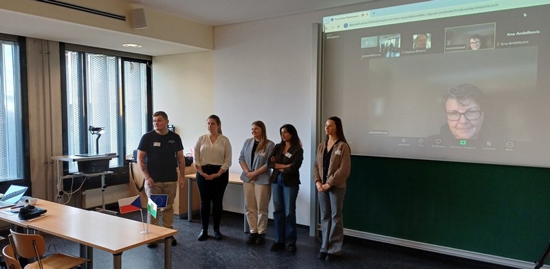 Photo 8. Participants on site and online. From left to right: Michael Hožďala and Adéla Ptáčníková (UJEP), Tabea Kottek and Aswathi Gopinath (CZU), Victoria Zueva and Ana Andjelkovic (CZU).