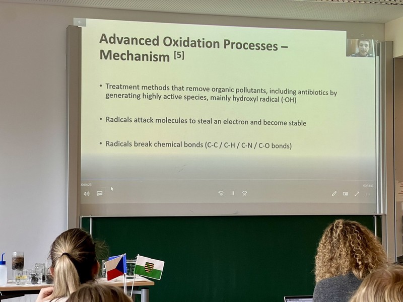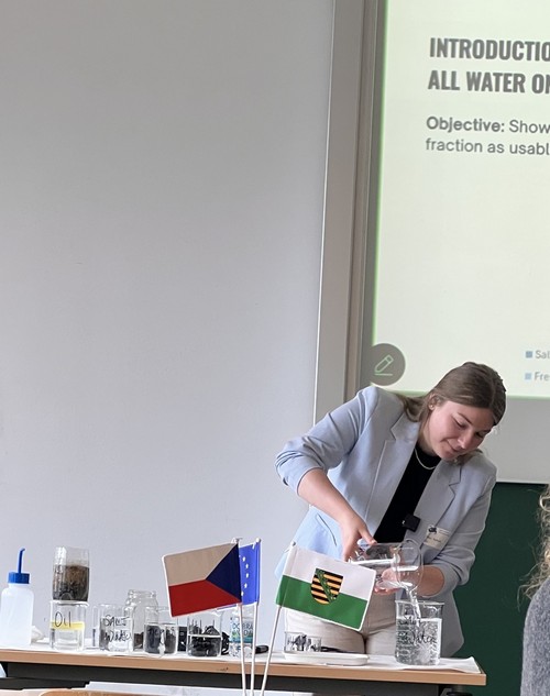 Photo 4. Tabea Kottek presenting on one of the experiments of the project “Water Pollution and Protection” (ČZU).